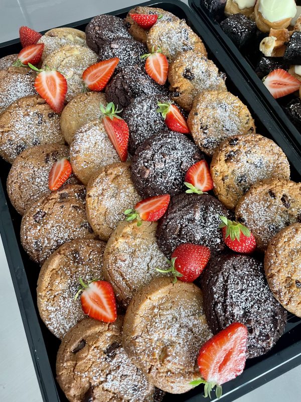 8 x White Choc Chip 8 x Milk Choc Chip 8 x Double Choc Chip 8 x Lemon Raisin & Oat