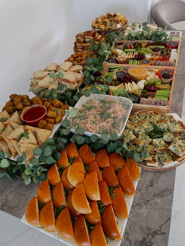 Usually tables include a range of luxury cheeses, charcuterie meats, antipasti, fresh baked breads, savoury foods, nuts, fruits, vegatables and finished off with delicious sweet platters. Your requests are also welcome!